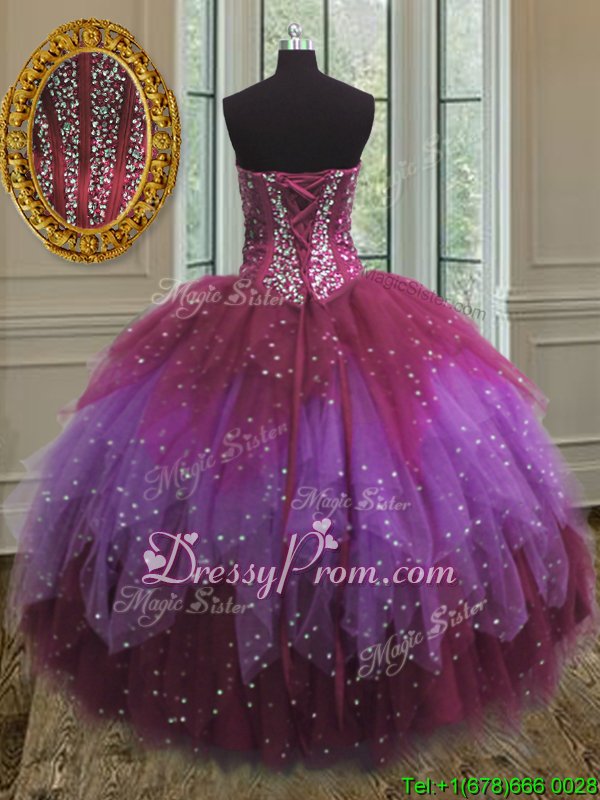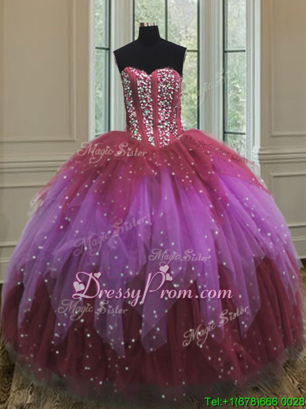Stunning Multi-color Ball Gowns Tulle Sweetheart Sleeveless Beading Floor Length Lace Up Ball Gown Prom Dress