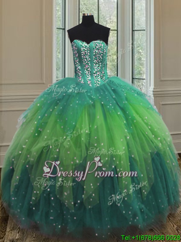 Spectacular Sleeveless Tulle Floor Length Lace Up Sweet 16 Quinceanera Dress inMulti-color forSpring and Summer and Fall and Winter withBeading