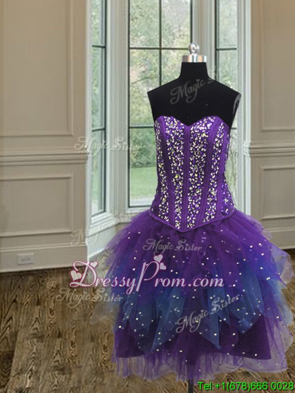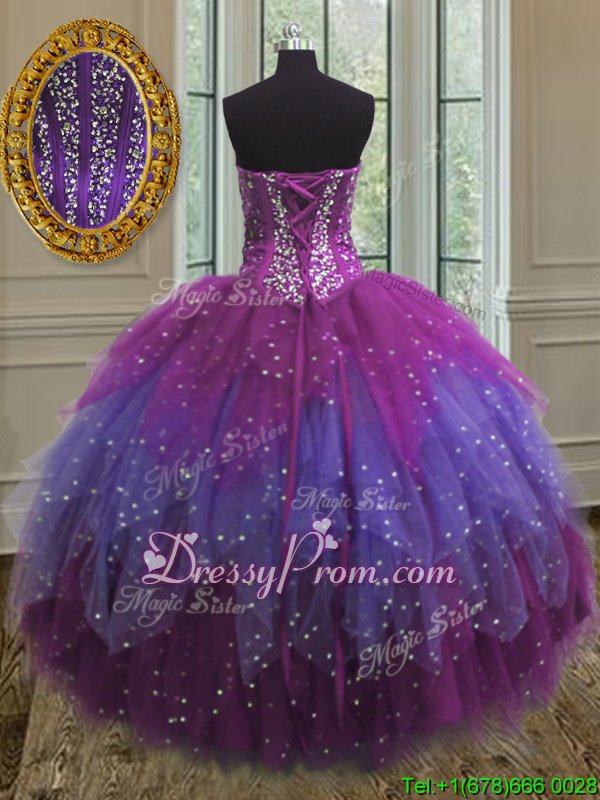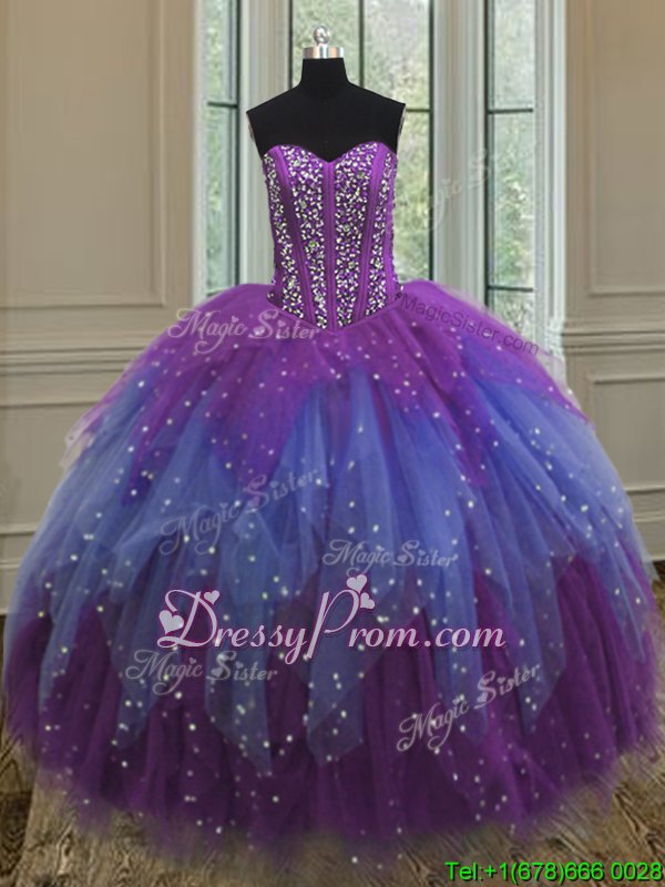 Neckline : SweetheartShown Color : Multi-colorSilhouette : Ball GownsSleeve Length : sleevelessHemline : floor lengthBack Detail : Lace upFabric : TulleEmbellishment : Beading,Ruffles,SequinsOccasion : Military Ball,Sweet 16,QuinceaneraSeason : Spring,Summer,Fall,Winter