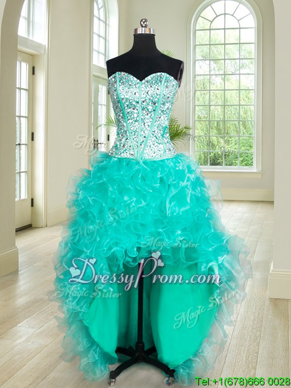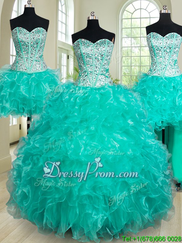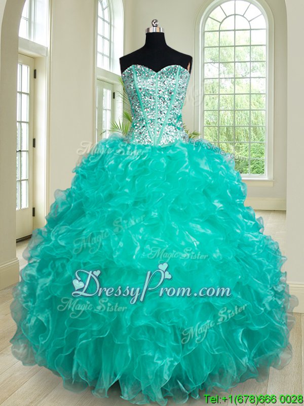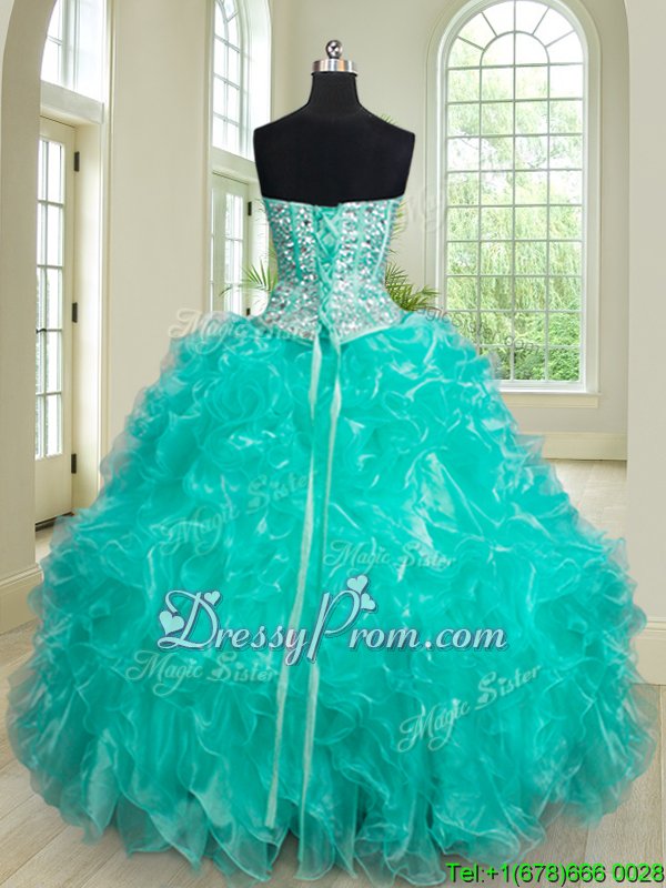 Admirable Spring and Summer and Fall and Winter Organza Sleeveless Floor Length Quince Ball Gowns andBeading and Ruffles