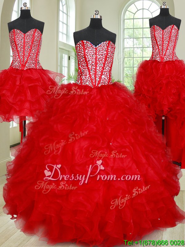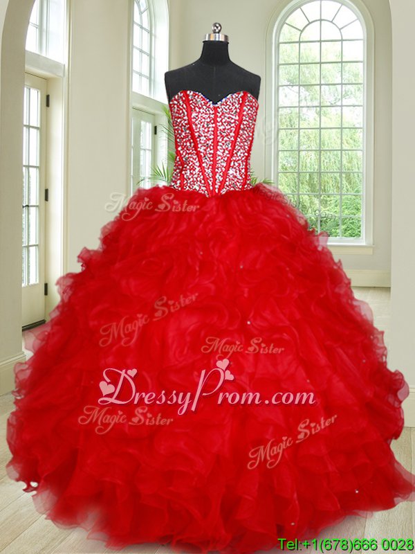 Elegant Sleeveless Beading and Ruffles Lace Up Sweet 16 Quinceanera Dress