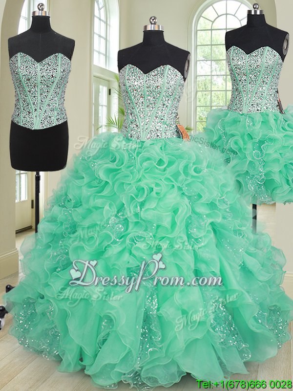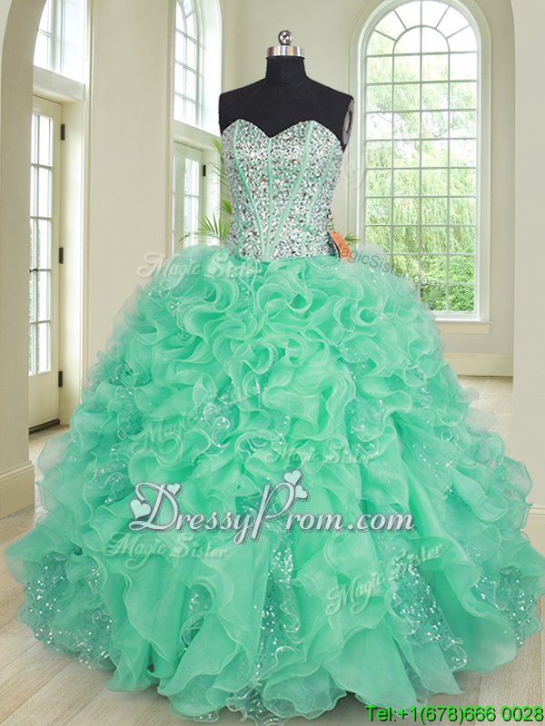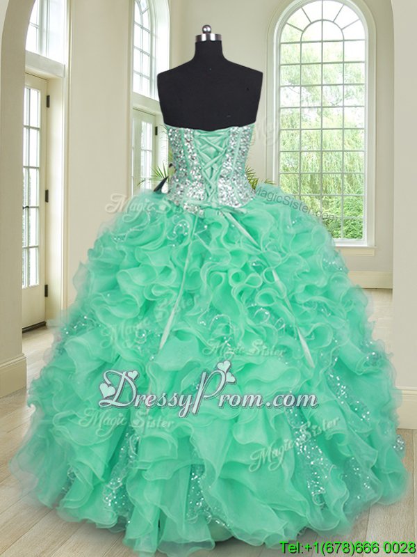 Superior Ball Gowns Vestidos de Quinceanera Turquoise Sweetheart Organza Sleeveless Floor Length Lace Up