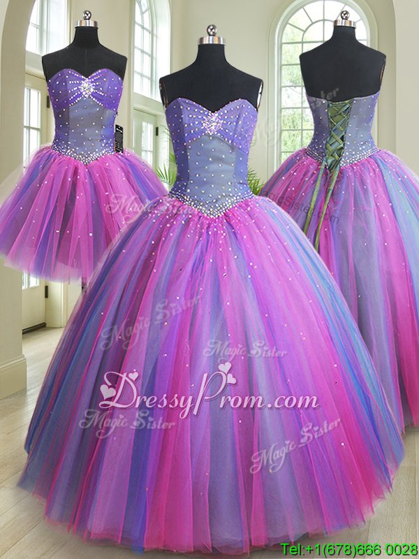 Neckline : SweetheartShown Color : Multi-colorSilhouette : Ball GownsSleeve Length : sleevelessHemline : floor lengthBack Detail : Lace upFabric : TulleEmbellishment : BeadingOccasion : Military Ball,Sweet 16,QuinceaneraSeason : Spring,Summer,Fall,Winter