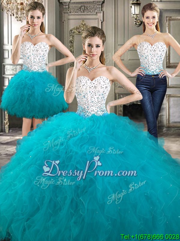 Neckline : SweetheartShown Color : WhiteSilhouette : Ball GownsSleeve Length : sleevelessHemline : floor lengthBack Detail : Lace upFabric : TulleEmbellishment : Beading,RufflesOccasion : Military Ball,Sweet 16,QuinceaneraSeason : Spring,Summer,Fall,Winter