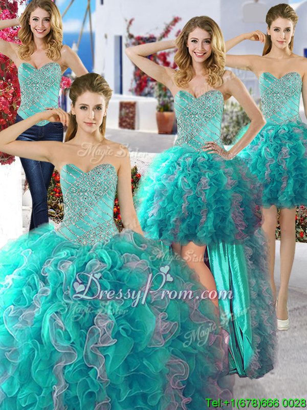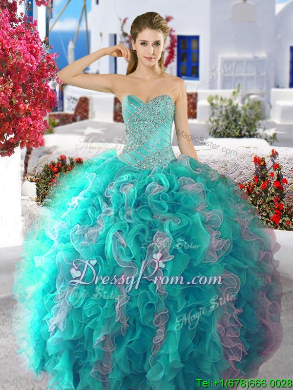 Neckline : SweetheartShown Color : Turquoise,GreySilhouette : Ball GownsSleeve Length : sleevelessHemline : floor lengthBack Detail : Lace upFabric : OrganzaEmbellishment : BeadingOccasion : Military Ball,Sweet 16,QuinceaneraSeason : Spring,Summer,Fall,Winter