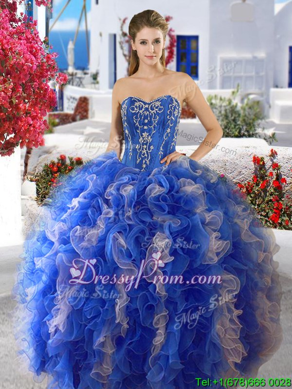 Neckline : SweetheartShown Color : Royal Blue,ChampagneSilhouette : Ball GownsSleeve Length : sleevelessHemline : floor lengthBack Detail : Lace upFabric : OrganzaEmbellishment : BeadingOccasion : Military Ball,Sweet 16,QuinceaneraSeason : Spring,Summer,Fall,Winter