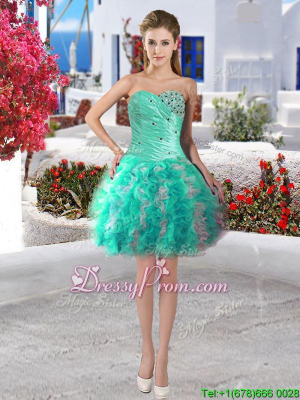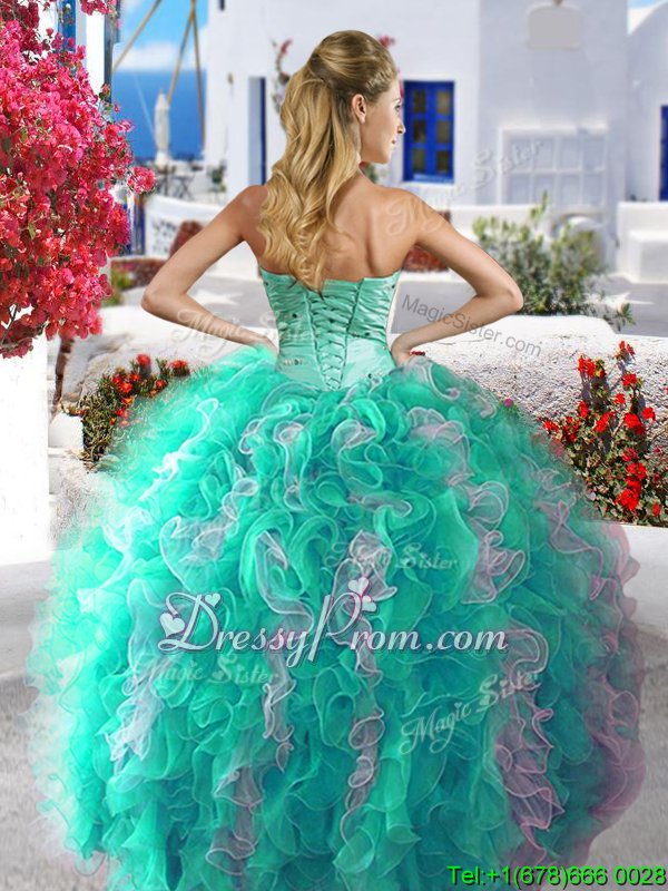 Neckline : SweetheartShown Color : White,TurquoiseSilhouette : Ball GownsSleeve Length : sleevelessBack Detail : Lace upFabric : OrganzaEmbellishment : BeadingOccasion : Military Ball,Sweet 16,QuinceaneraSeason : Spring,Summer,Fall,Winter