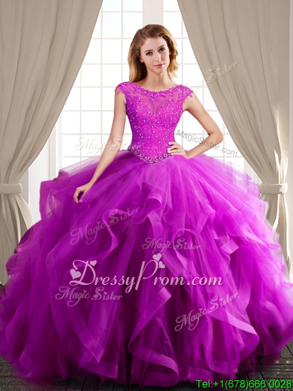 Neckline : ScoopShown Color : LilacSilhouette : Ball GownsSleeve Length : cap sleevesHemline : with trainBack Detail : Lace upFabric : TulleEmbellishment : Beading,Appliques,RufflesOccasion : Military Ball,Sweet 16,QuinceaneraSeason : Spring,Summer,Fall,Winter