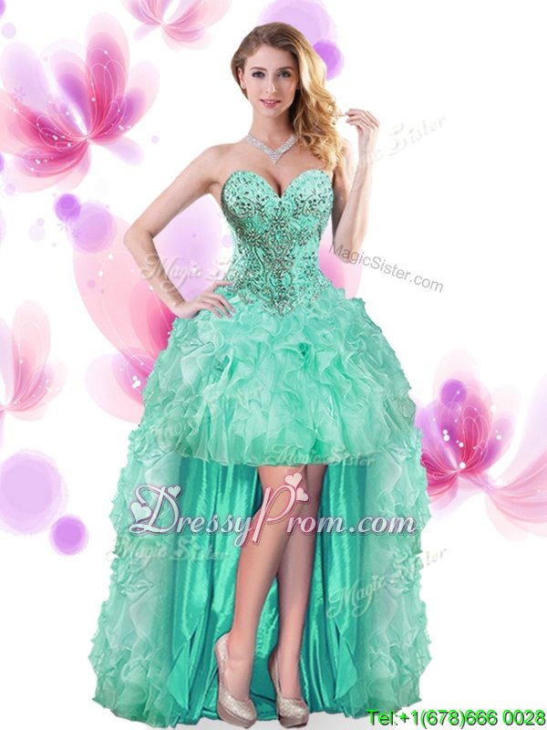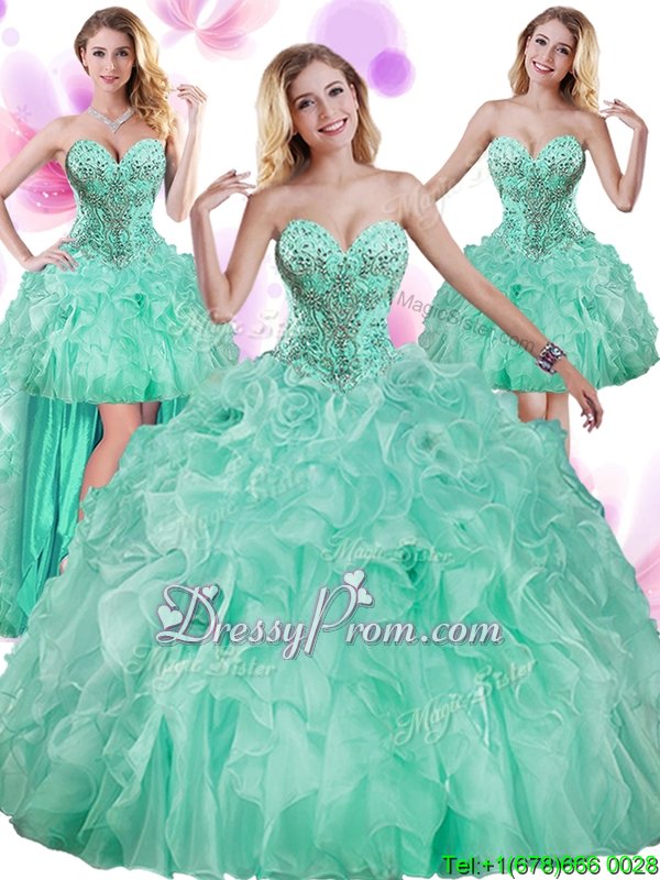 Turquoise Sleeveless Beading and Ruffles Floor Length Quinceanera Gown
