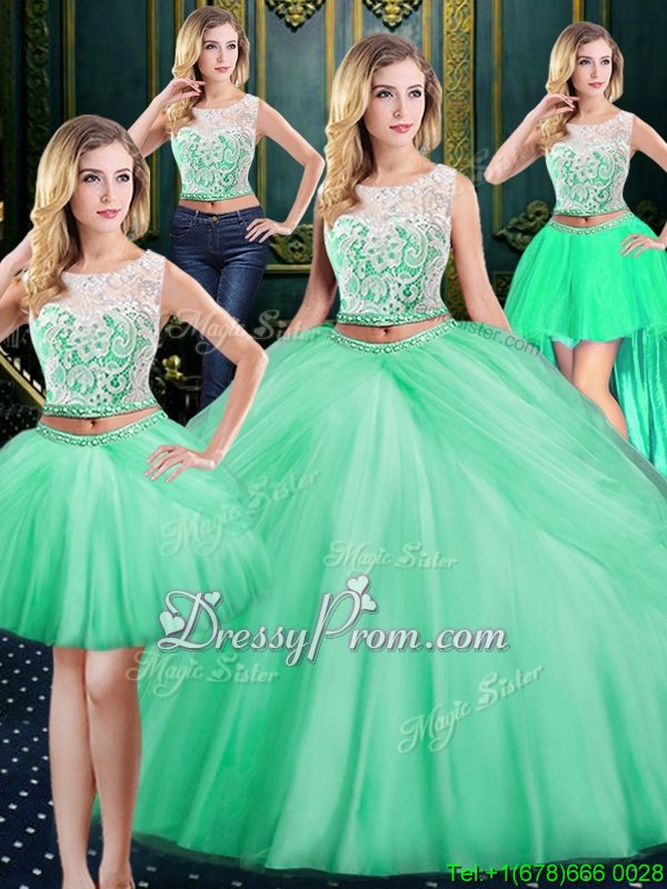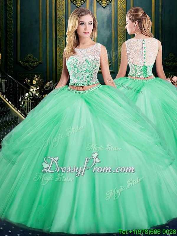 Scoop Sleeveless Lace Up Quinceanera Gown Apple Green Tulle