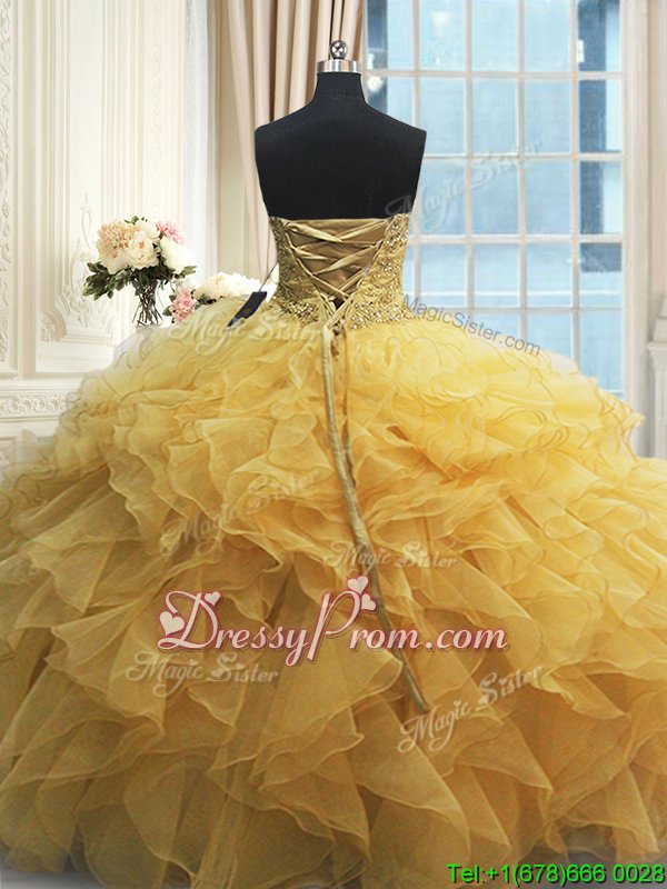 Neckline : SweetheartShown Color : YellowSilhouette : Ball GownsSleeve Length : sleevelessHemline : floor lengthBack Detail : Lace upFabric : OrganzaEmbellishment : Beading,Appliques,RufflesOccasion : Military Ball,Sweet 16,QuinceaneraSeason : Spring,Summer,Fall,Winter