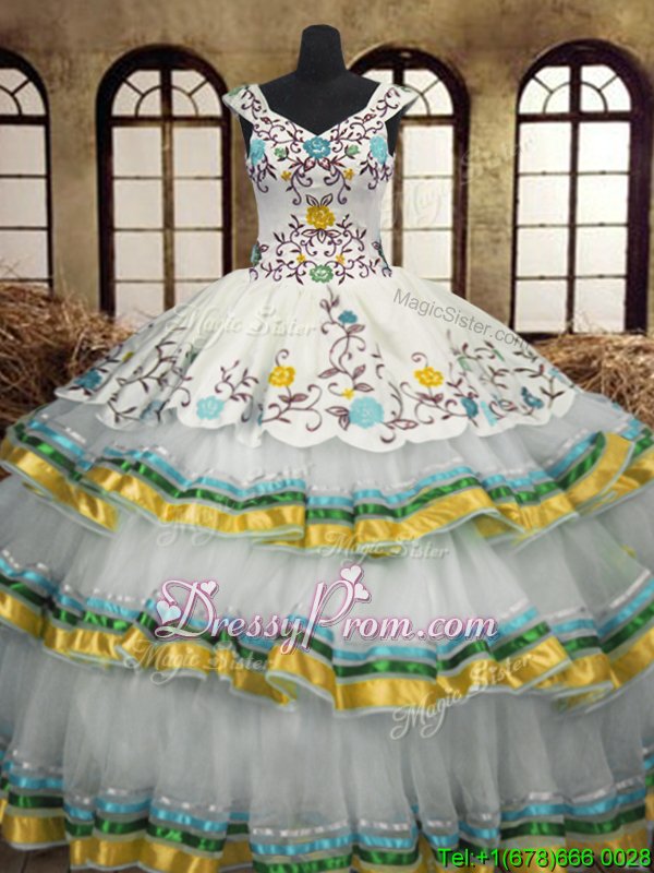 Floor Length Multi-color Ball Gown Prom Dress V-neck Sleeveless Lace Up
