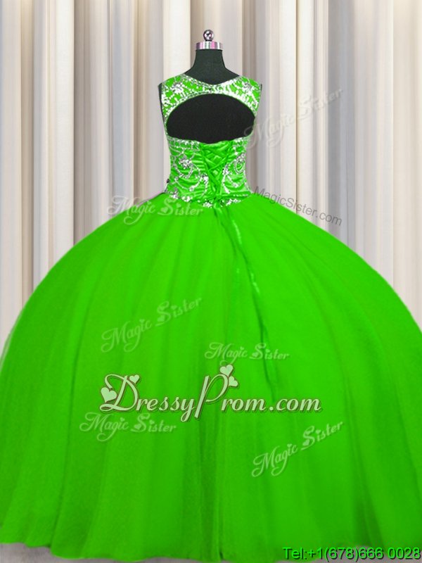 Neckline : ScoopShown Color : Spring GreenSilhouette : Ball GownsSleeve Length : sleevelessHemline : floor lengthBack Detail : Lace upFabric : TulleEmbellishment : BeadingOccasion : Military Ball,Sweet 16,QuinceaneraSeason : Spring,Summer,Fall,Winter