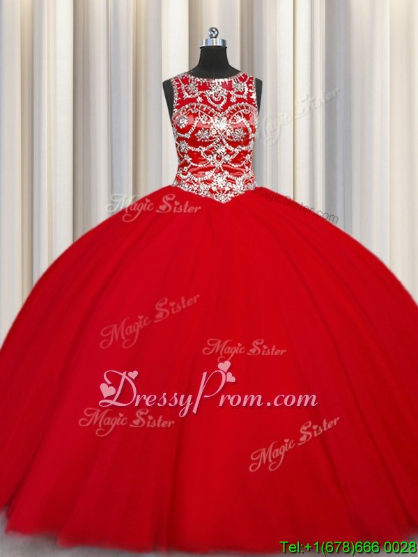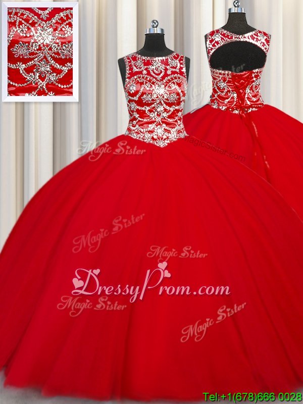 Neckline : ScoopShown Color : RedSilhouette : Ball GownsSleeve Length : sleevelessHemline : floor lengthBack Detail : Lace upFabric : TulleEmbellishment : BeadingOccasion : Military Ball,Sweet 16,QuinceaneraSeason : Spring,Summer,Fall,Winter