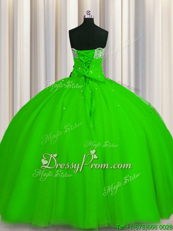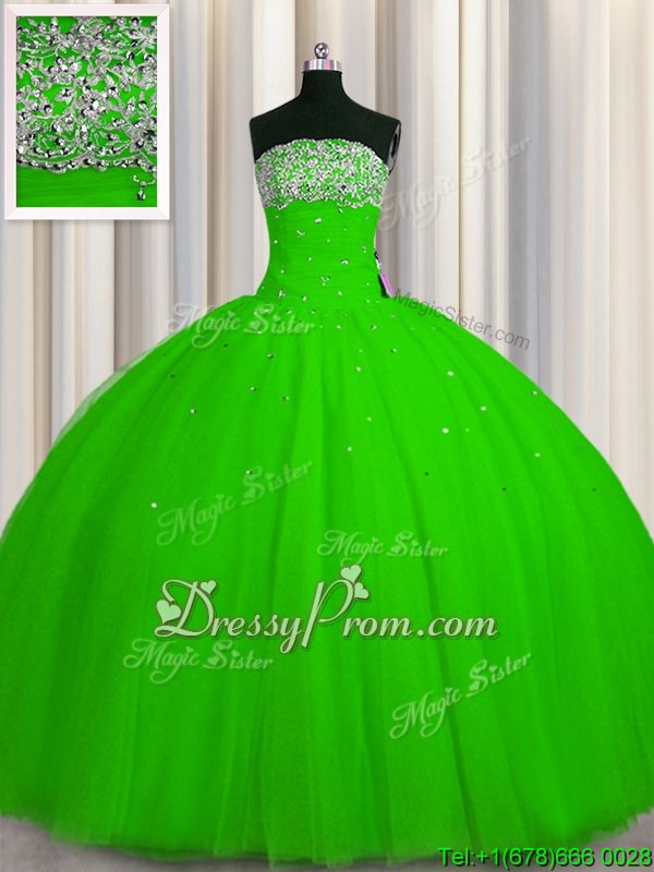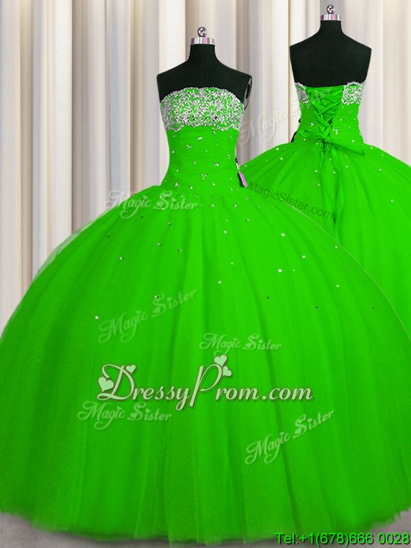 Neckline : StraplessShown Color : Spring GreenSilhouette : Ball GownsSleeve Length : sleevelessHemline : floor lengthBack Detail : Lace upFabric : TulleEmbellishment : Beading,SequinsOccasion : Military Ball,Sweet 16,QuinceaneraSeason : Spring,Summer,Fall,Winter