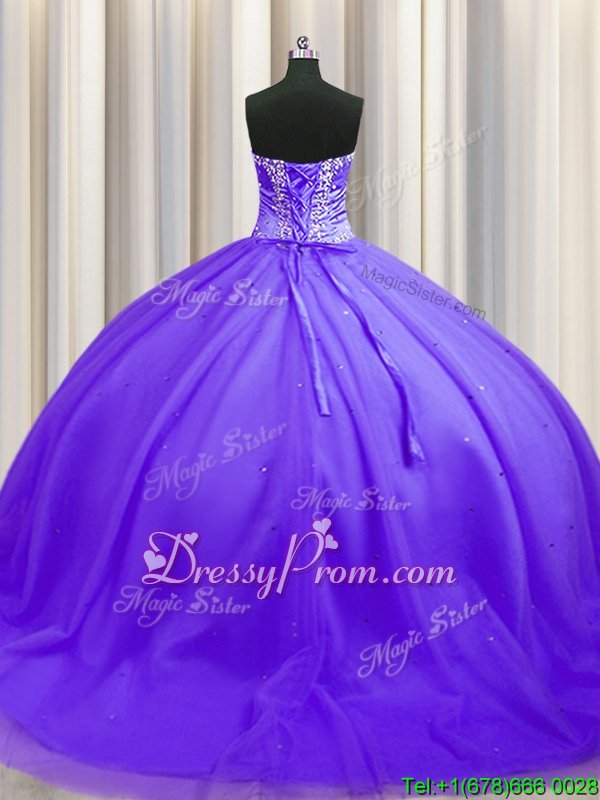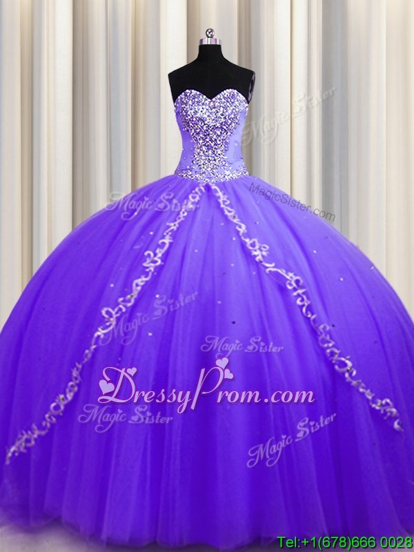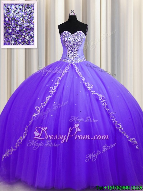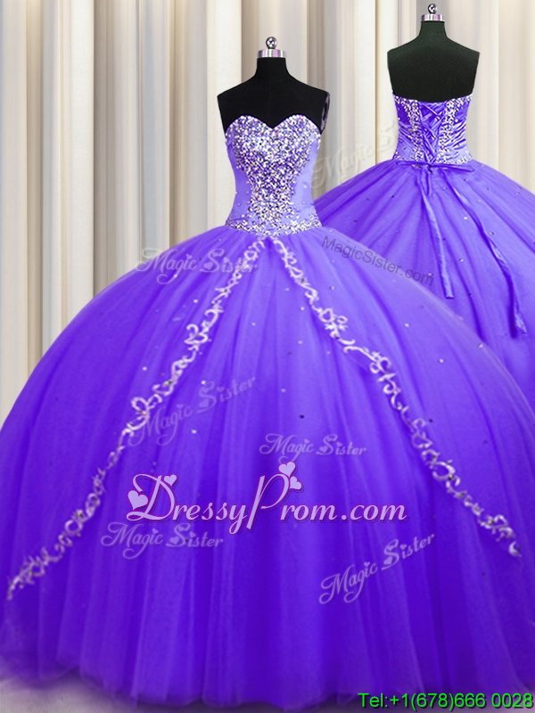 Neckline : SweetheartShown Color : LavenderSilhouette : Ball GownsSleeve Length : sleevelessHemline : with trainBack Detail : Lace upFabric : TulleEmbellishment : BeadingOccasion : Military Ball,Sweet 16,QuinceaneraSeason : Spring,Summer,Fall,Winter