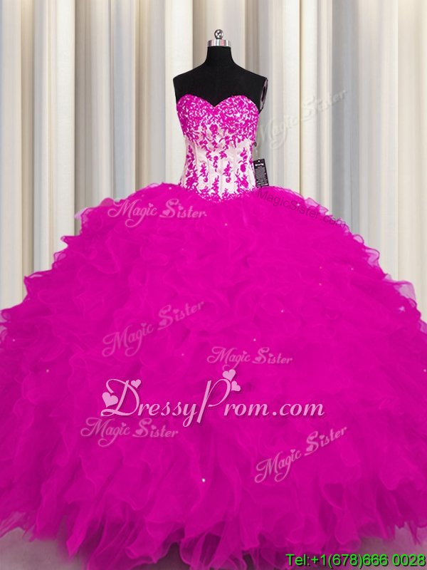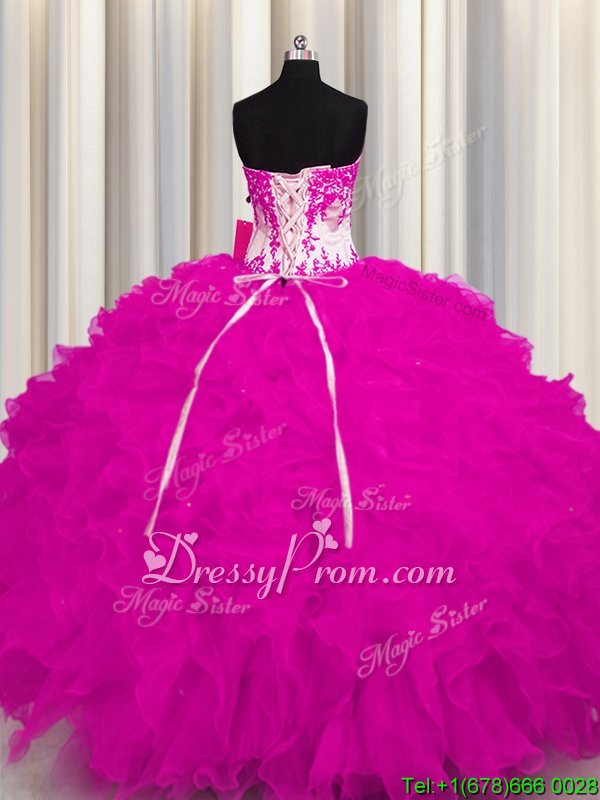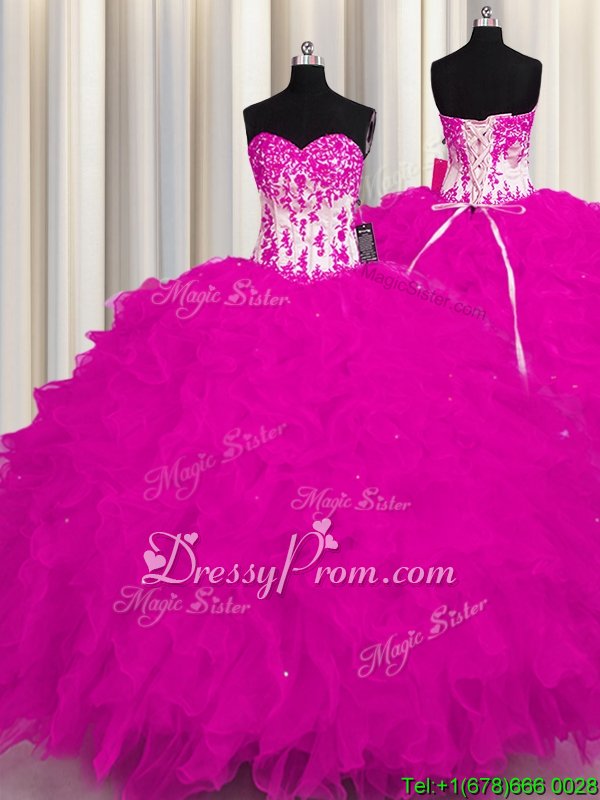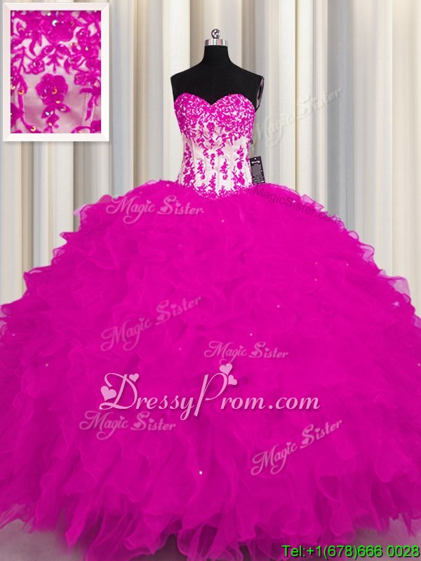 Neckline : SweetheartShown Color : FuchsiaSilhouette : Ball GownsSleeve Length : sleevelessHemline : floor lengthBack Detail : Lace upFabric : OrganzaEmbellishment : AppliquesOccasion : Military Ball,Sweet 16,QuinceaneraSeason : Spring,Summer,Fall,Winter