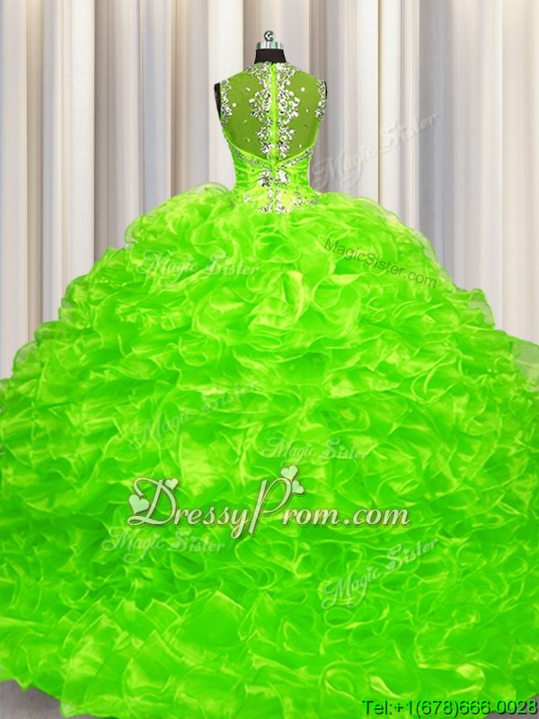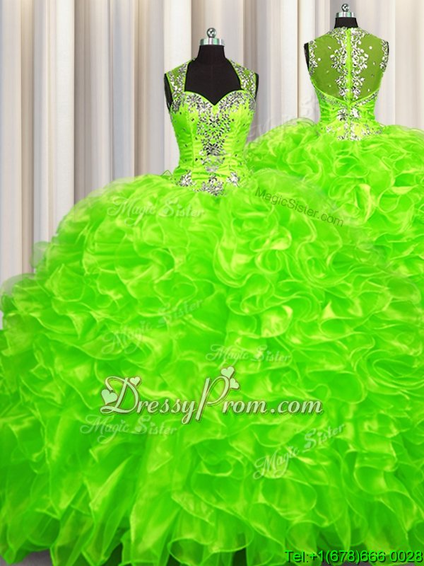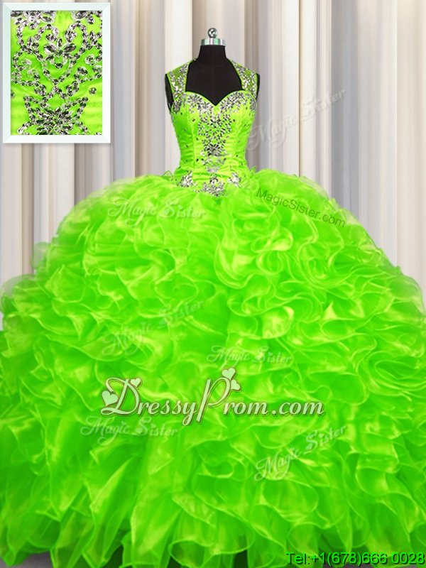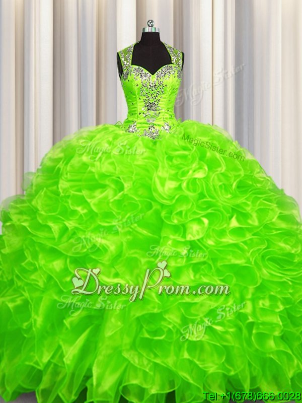 Neckline : SweetheartShown Color : Spring GreenSilhouette : Ball GownsSleeve Length : sleevelessHemline : with trainBack Detail : ZipperFabric : OrganzaEmbellishment : BeadingOccasion : Military Ball,Sweet 16,QuinceaneraSeason : Spring,Summer
