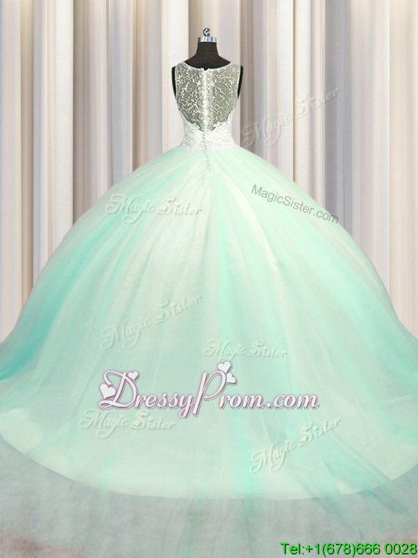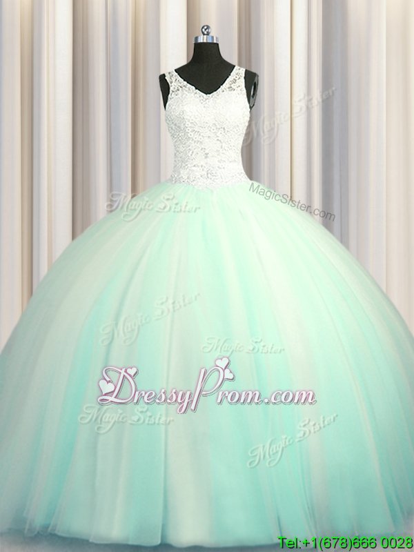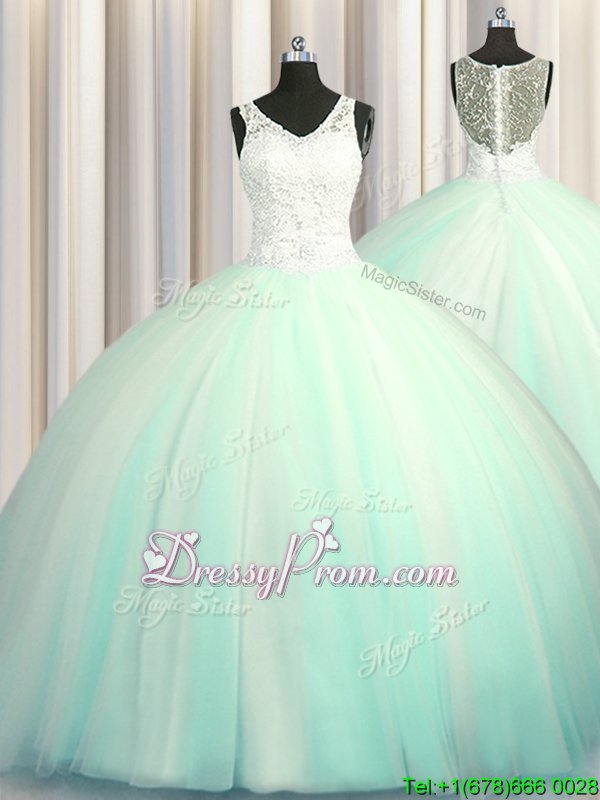Neckline : V-neckShown Color : Apple GreenSilhouette : Ball GownsSleeve Length : sleevelessHemline : with trainBack Detail : ZipperFabric : TulleEmbellishment : Beading,AppliquesOccasion : Military Ball,Sweet 16,QuinceaneraSeason : Spring,Summer,Fall,Winter