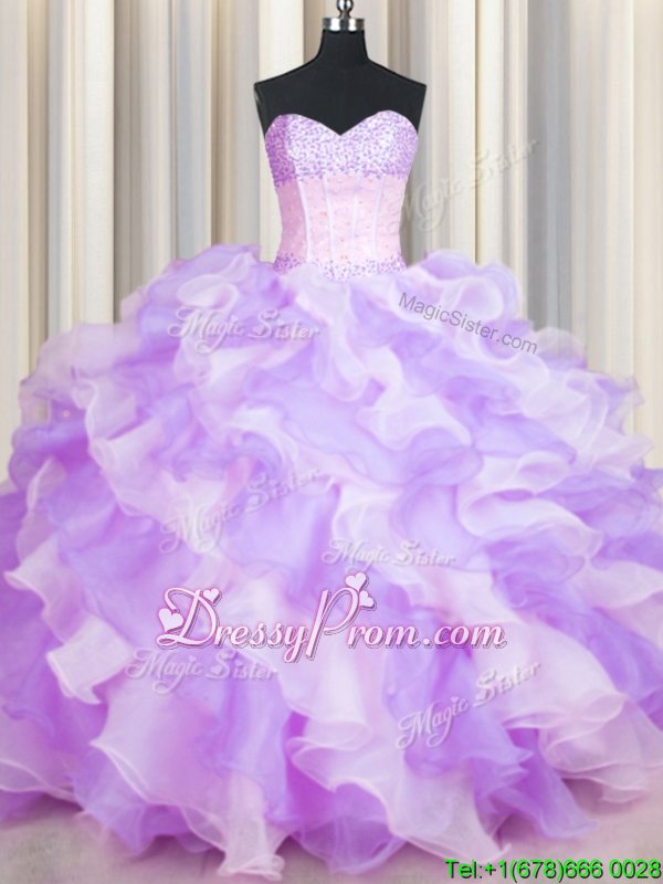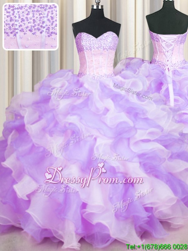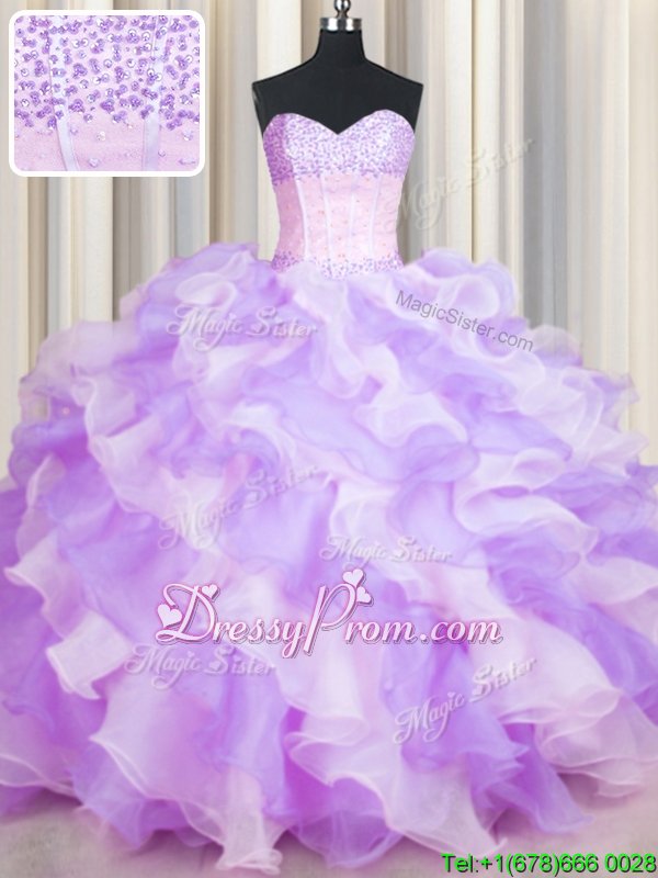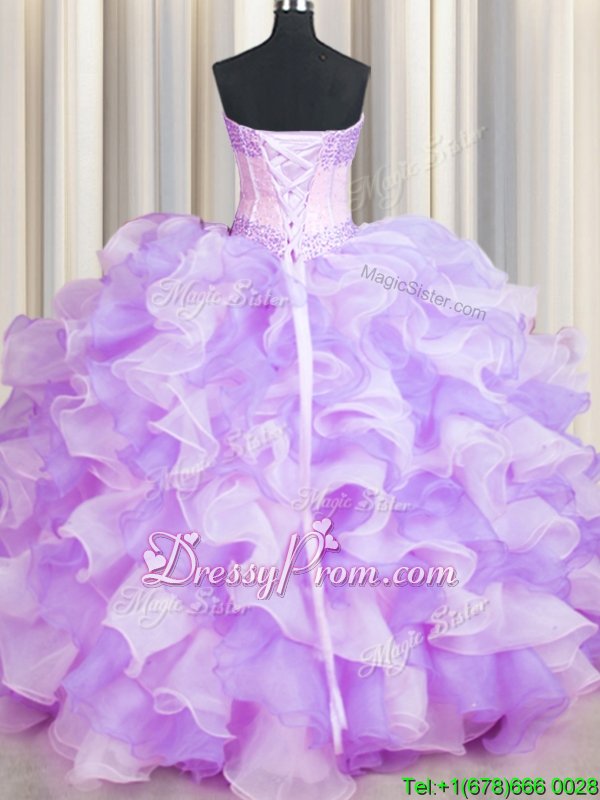 Free and Easy Spring and Summer and Fall and Winter Organza Sleeveless Floor Length 15 Quinceanera Dress andBeading and Ruffles