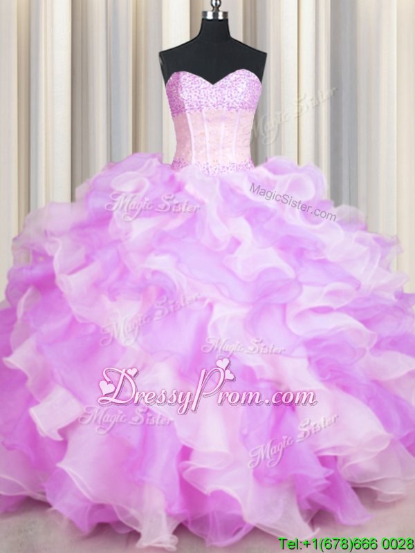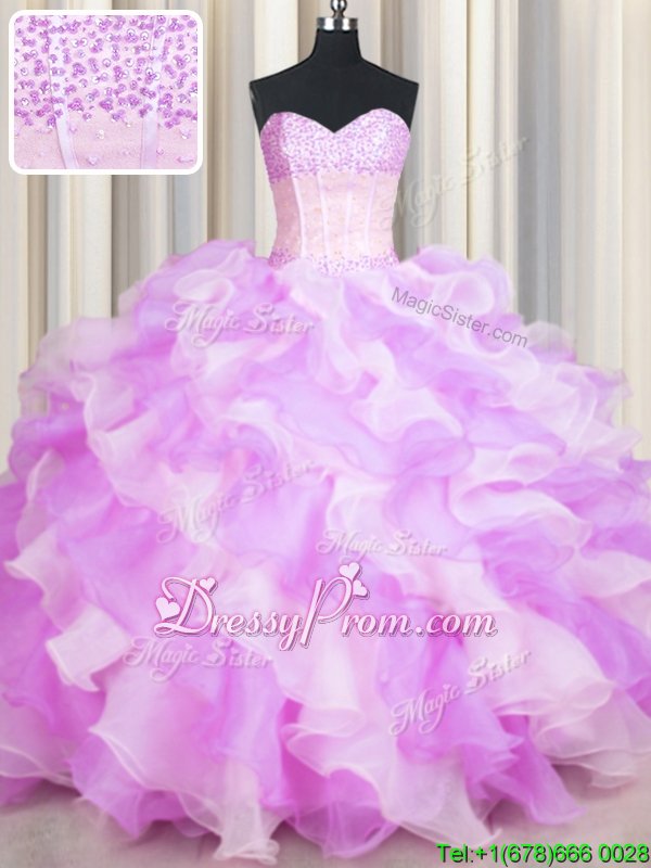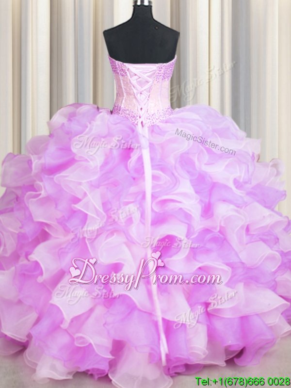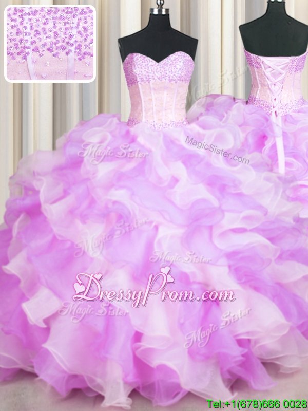 Most Popular Floor Length Lace Up 15 Quinceanera Dress Multi-color and In forMilitary Ball and Sweet 16 and Quinceanera withBeading and Ruffles