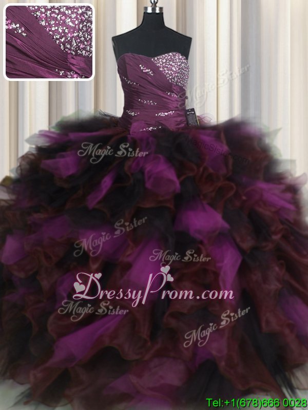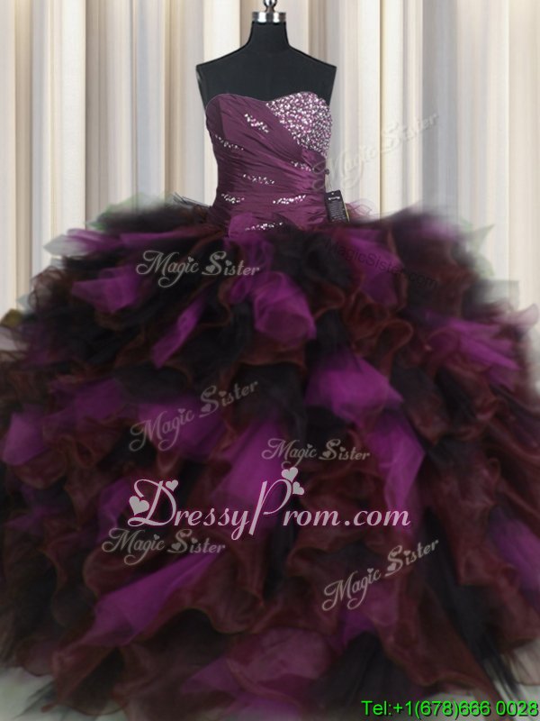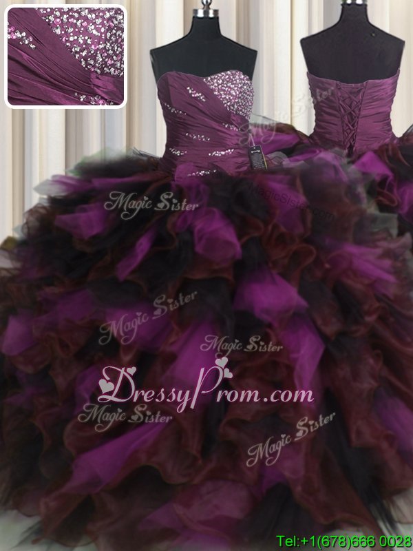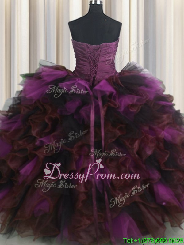 Neckline : Sweetheart Shown Color : Fuchsia Silhouette : Ball Gowns Sleeve Length : sleeveless Hemline : floor length Back Detail : Lace up Fabric : Organza Embellishment : Beading,Ruffles,Ruffled Layers Occasion : Military Ball,Sweet 16,Quinceanera Season : Spring,Summer,Fall,Winter