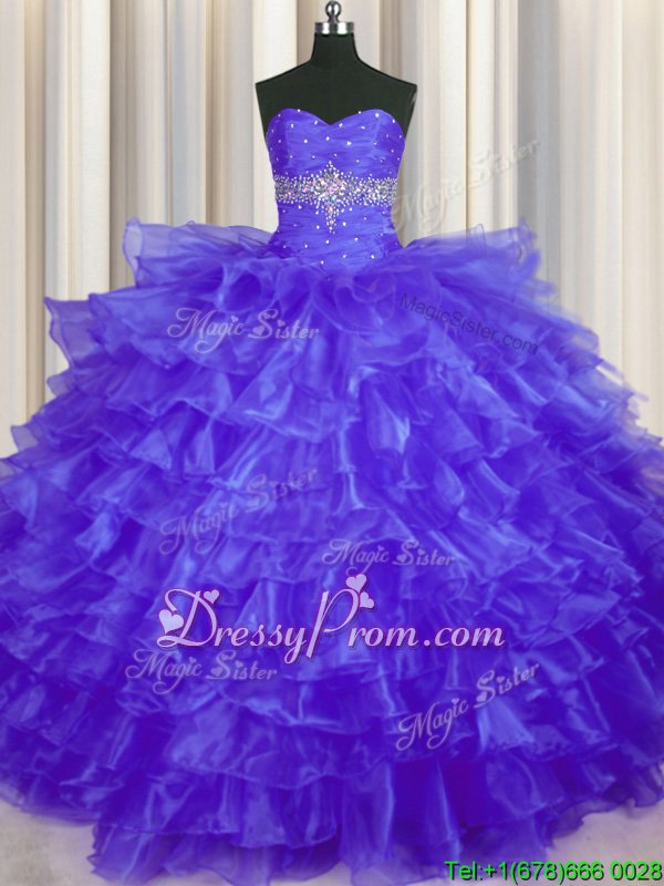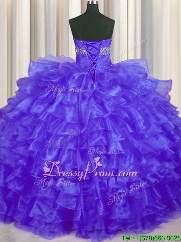 Neckline : SweetheartShown Color : PurpleSilhouette : Ball GownsSleeve Length : sleevelessHemline : floor lengthBack Detail : Lace upFabric : OrganzaEmbellishment : Beading,Ruffled LayersOccasion : Military Ball,Sweet 16,QuinceaneraSeason : Spring,Summer,Fall,Winter