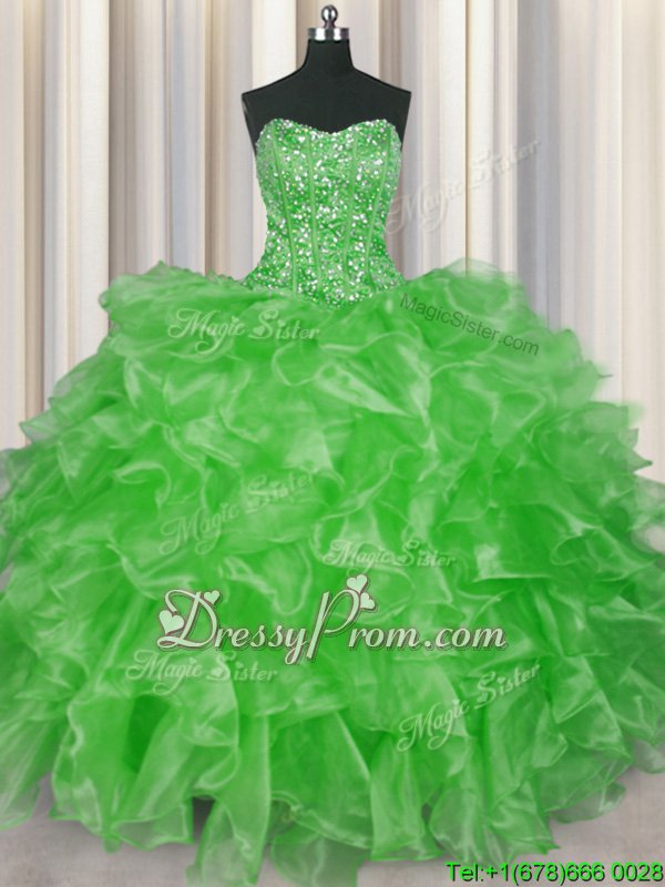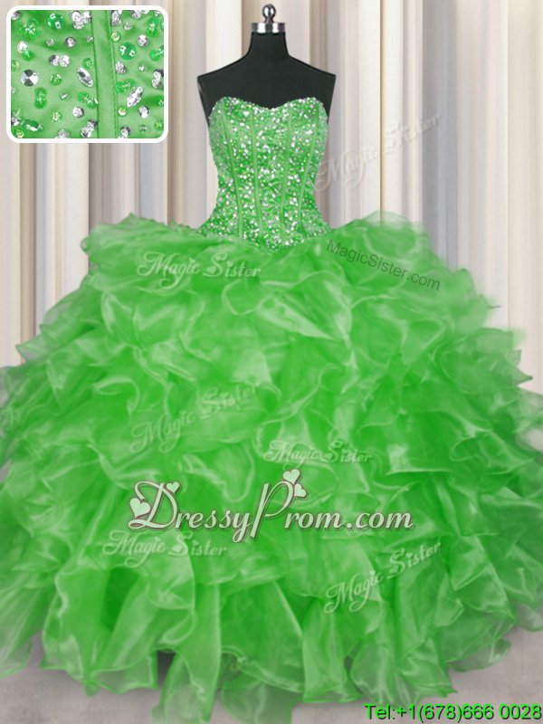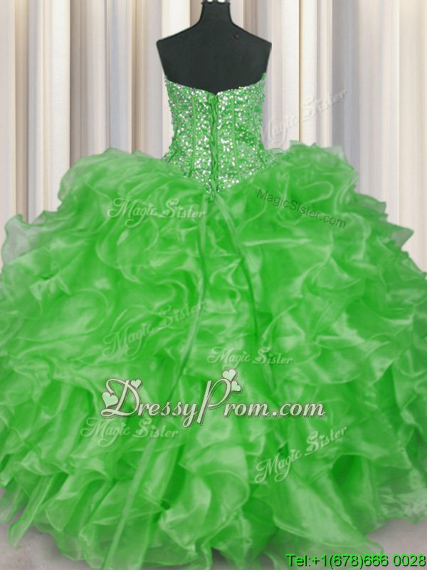 Neckline : StraplessShown Color : Spring GreenSilhouette : Ball GownsSleeve Length : sleevelessHemline : floor lengthBack Detail : Lace upFabric : OrganzaEmbellishment : Beading,RufflesOccasion : Military Ball,Sweet 16,QuinceaneraSeason : Spring,Summer,Fall,Winter