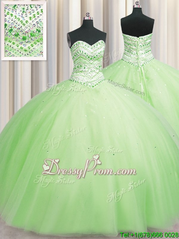 Neckline : SweetheartShown Color : Yellow GreenSilhouette : Ball GownsSleeve Length : sleevelessHemline : floor lengthBack Detail : Lace upFabric : TulleEmbellishment : BeadingOccasion : Military Ball,Sweet 16,QuinceaneraSeason : Spring,Summer,Fall,Winter