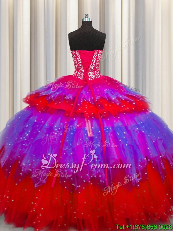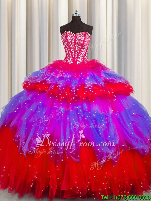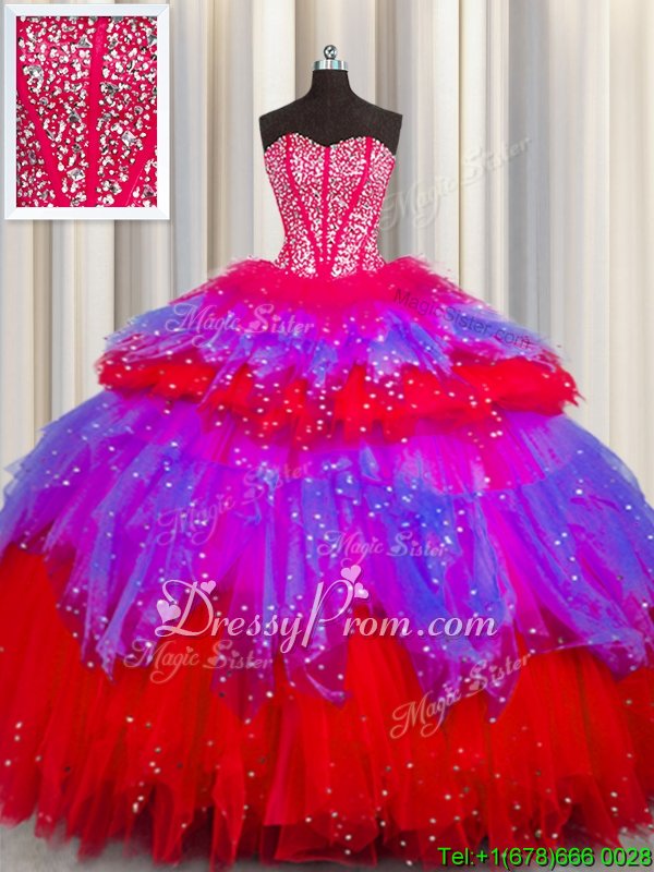 Neckline : SweetheartShown Color : Multi-colorSilhouette : Ball GownsSleeve Length : sleevelessHemline : floor lengthBack Detail : Lace upFabric : TulleEmbellishment : Beading,Ruffles,Ruffled Layers,SequinsOccasion : Military Ball,Sweet 16,QuinceaneraSeason : Spring,Summer,Fall,Winter