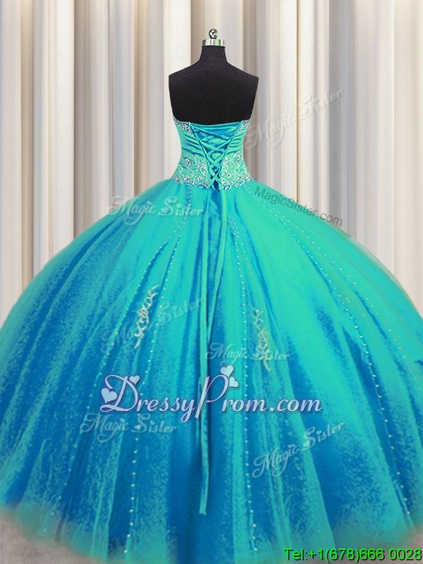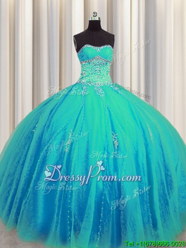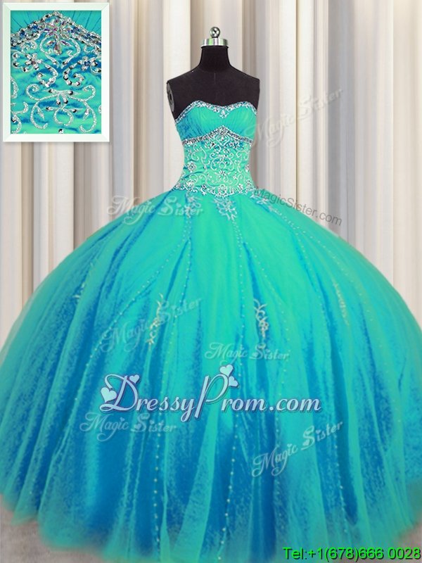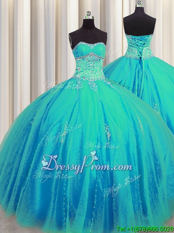 Neckline : SweetheartShown Color : Aqua BlueSilhouette : Ball GownsSleeve Length : sleevelessHemline : floor lengthBack Detail : Lace upFabric : TulleEmbellishment : Beading,AppliquesOccasion : Military Ball,Sweet 16,QuinceaneraSeason : Spring,Summer,Fall,Winter