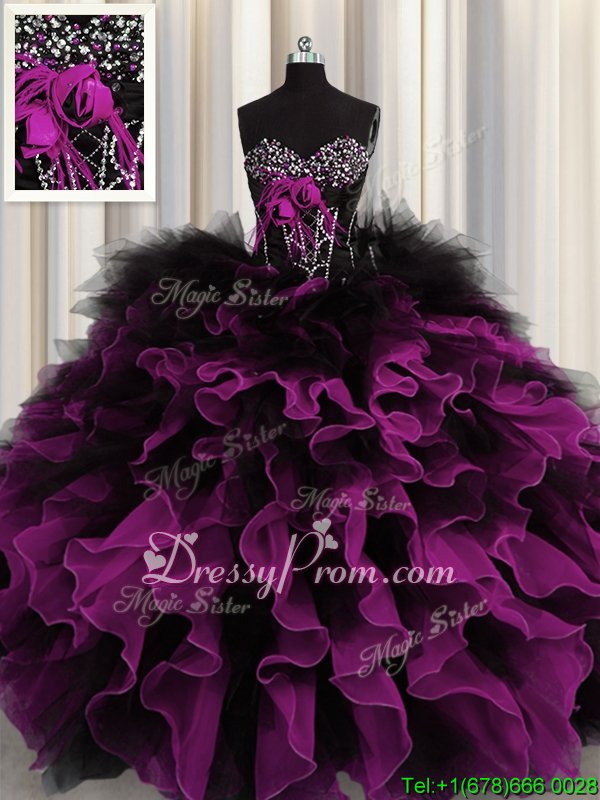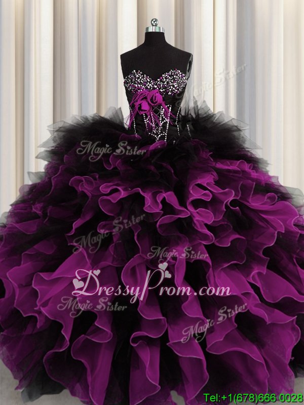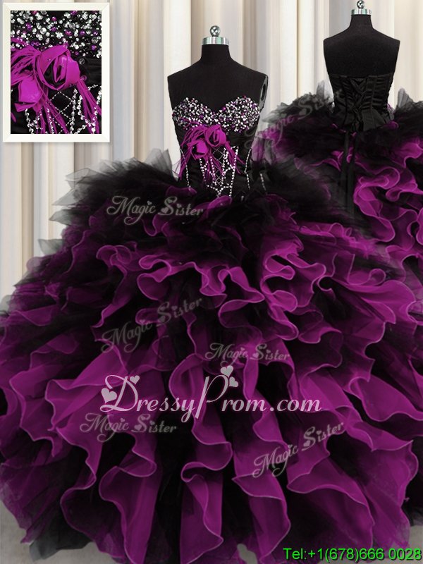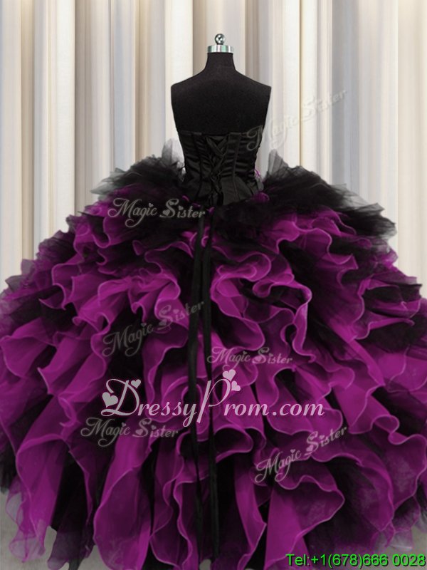 Sophisticated Sweetheart Sleeveless Organza Quinceanera Gowns Beading and Ruffles Lace Up