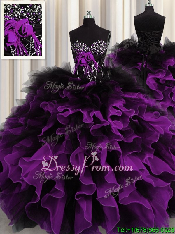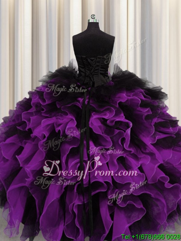 Romantic Multi-color Sleeveless Organza Lace Up Quinceanera Gowns forMilitary Ball and Sweet 16 and Quinceanera