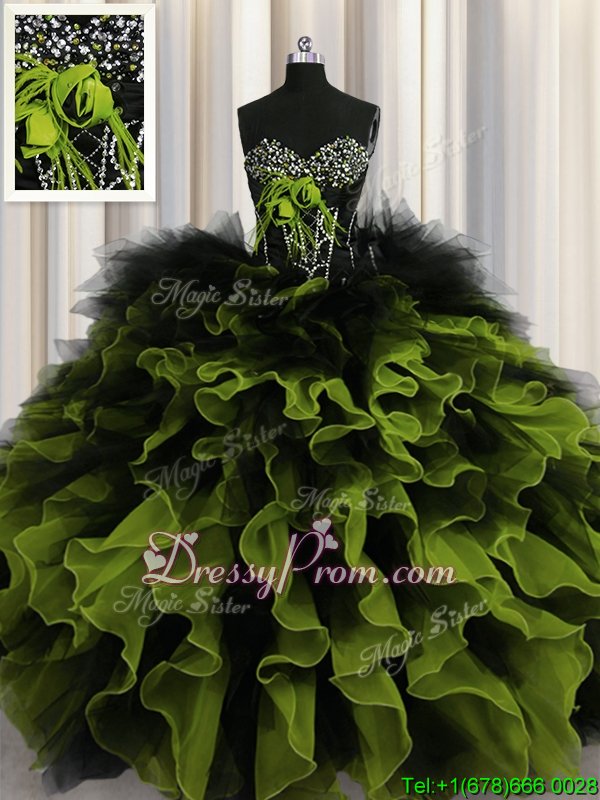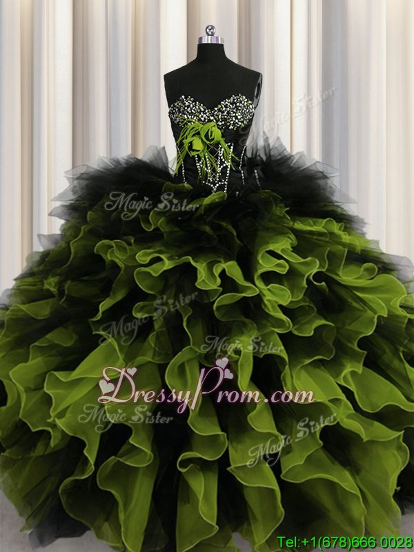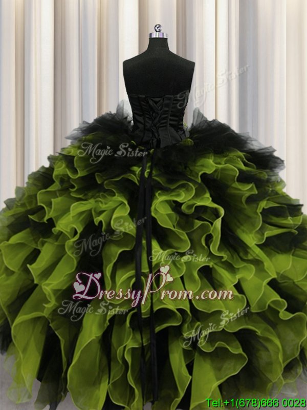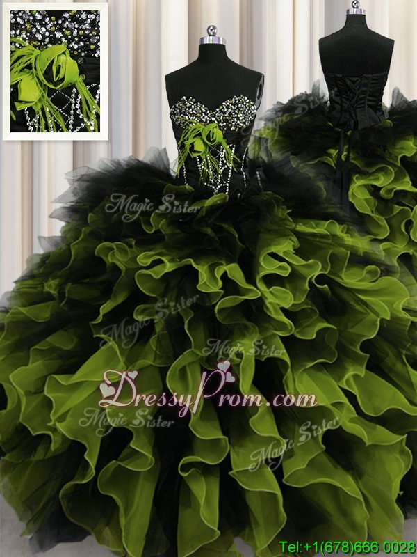 Unique Multi-color Organza Lace Up Sweetheart Sleeveless Floor Length Sweet 16 Quinceanera Dress Beading and Ruffles