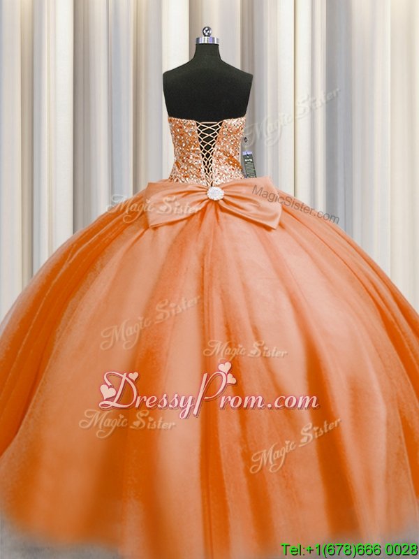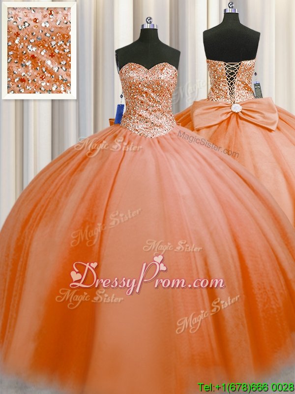 Neckline : SweetheartShown Color : OrangeSilhouette : Ball GownsSleeve Length : sleevelessHemline : floor lengthBack Detail : Lace upFabric : TulleEmbellishment : BeadingOccasion : Military Ball,Sweet 16,QuinceaneraSeason : Spring,Summer,Fall,Winter