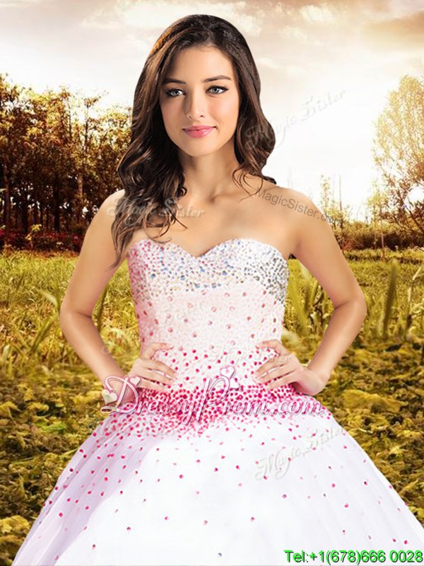 Top Selling White Ball Gowns Beading Quinceanera Dresses Lace Up Tulle Sleeveless Floor Length