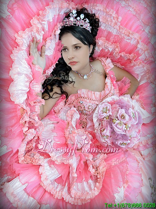 Luxurious Spring and Summer and Fall and Winter Organza and Taffeta Sleeveless Floor Length Quinceanera Gowns andBeading and Embroidery and Ruffled Layers