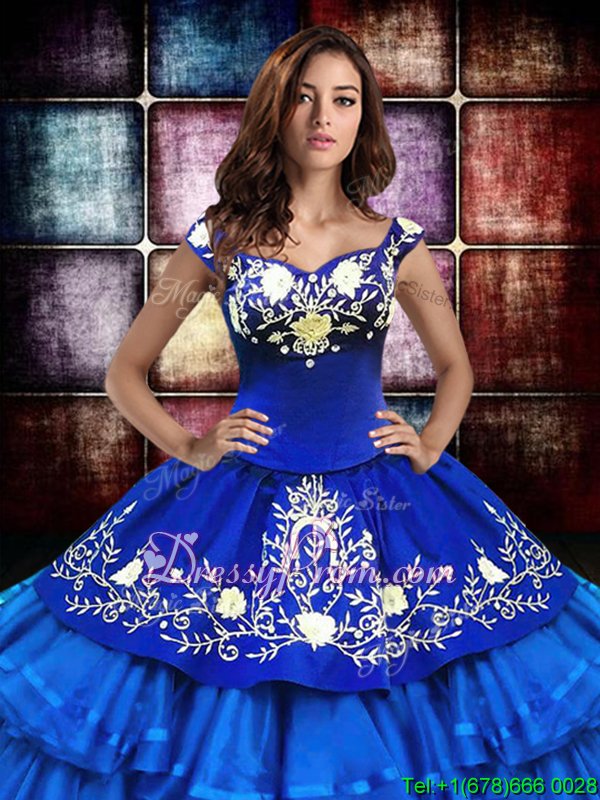 Neckline : Off the shoulderShown Color : TurquoiseSilhouette : Ball GownsSleeve Length : sleevelessHemline : floor lengthBack Detail : Lace upFabric : OrganzaEmbellishment : Embroidery,Ruffled LayersOccasion : Military Ball,Sweet 16,QuinceaneraSeason : Spring,Summer,Fall,Winter