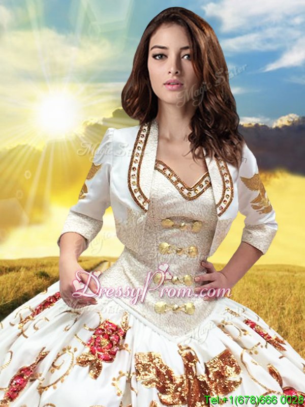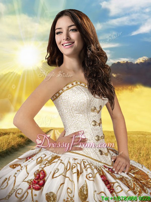 Neckline : SweetheartShown Color : WhiteSilhouette : Ball GownsSleeve Length : sleevelessHemline : floor lengthBack Detail : Lace upFabric : OrganzaEmbellishment : Beading,Embroidery,RufflesOccasion : Military Ball,Sweet 16,QuinceaneraSeason : Spring,Summer,Fall,Winter