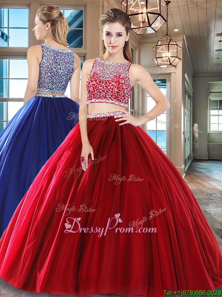 Neckline : BateauShown Color : Wine RedSilhouette : Two PiecesSleeve Length : sleevelessHemline : floor lengthBack Detail : Side zipperFabric : TulleEmbellishment : BeadingOccasion : Military Ball,Sweet 16,QuinceaneraSeason : Spring,Summer,Fall,Winter