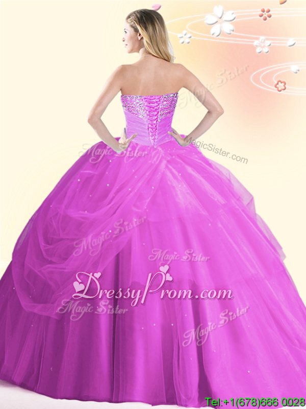 Hot Sale Floor Length Lace Up Vestidos de Quinceanera Purple and In forMilitary Ball and Sweet 16 and Quinceanera withBeading
