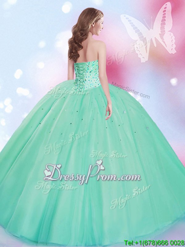Neckline : SweetheartShown Color : Apple GreenSilhouette : Ball GownsSleeve Length : sleevelessHemline : floor lengthBack Detail : Lace upFabric : TulleEmbellishment : BeadingOccasion : Military Ball,Sweet 16,QuinceaneraSeason : Spring,Summer,Fall,Winter