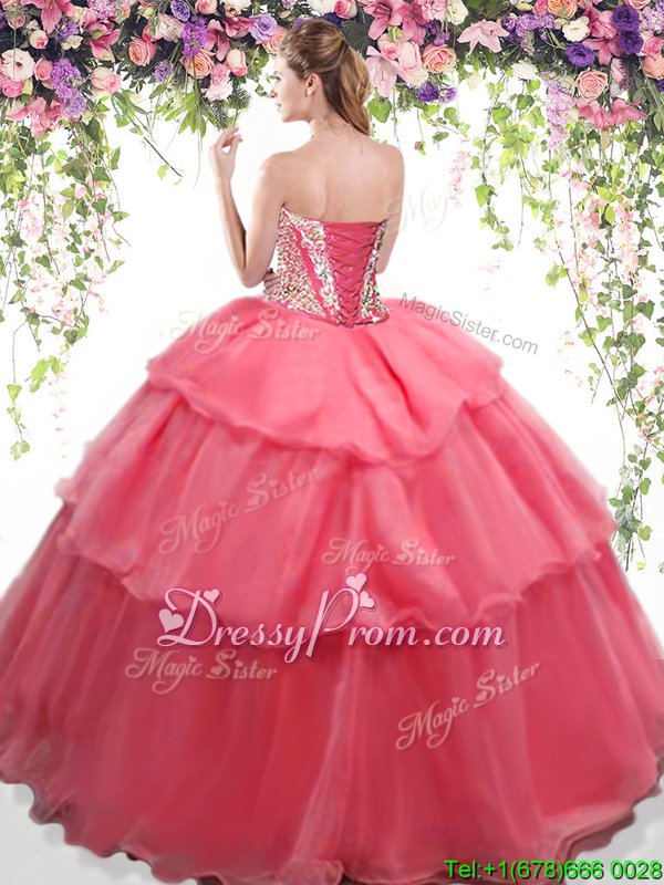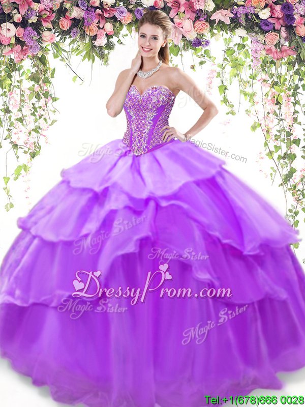 Neckline : SweetheartShown Color : Eggplant PurpleSilhouette : Ball GownsSleeve Length : sleevelessHemline : floor lengthBack Detail : Lace upFabric : OrganzaEmbellishment : Beading,Ruffled LayersOccasion : Military Ball,Sweet 16,QuinceaneraSeason : Spring,Summer,Fall,Winter