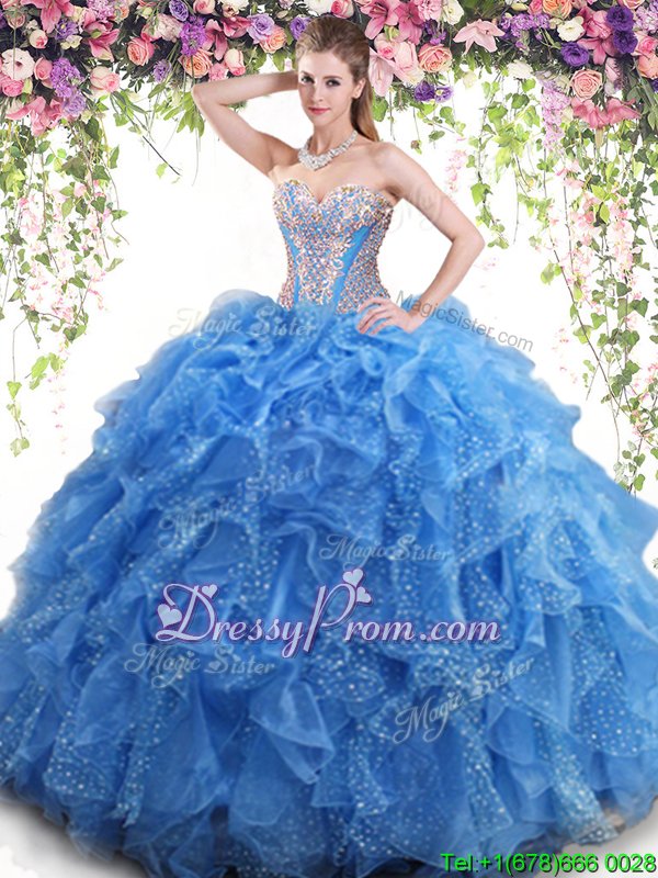 Neckline : SweetheartShown Color : Aqua BlueSilhouette : MermaidSleeve Length : sleevelessHemline : floor lengthBack Detail : Lace upFabric : OrganzaEmbellishment : Beading,RufflesOccasion : Military Ball,Sweet 16,QuinceaneraSeason : Spring,Summer,Fall,Winter