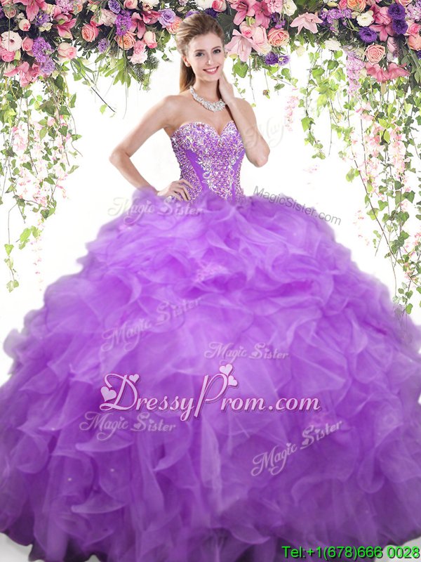 Neckline : SweetheartShown Color : Eggplant PurpleSilhouette : Ball GownsSleeve Length : sleevelessHemline : floor lengthBack Detail : Lace upFabric : OrganzaEmbellishment : Beading,RufflesOccasion : Military Ball,Sweet 16,QuinceaneraSeason : Spring,Summer,Fall,Winter