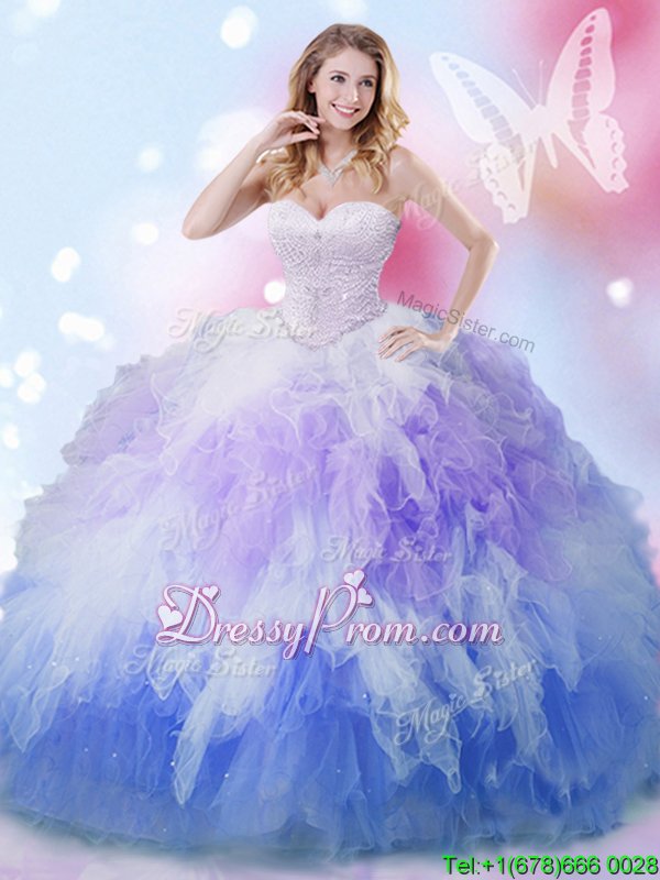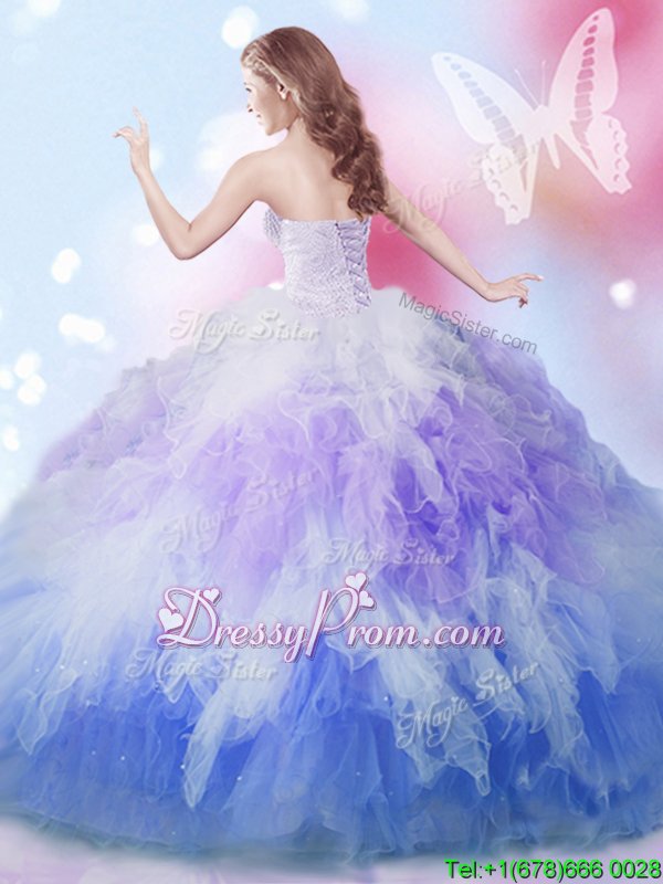 Fine Sweetheart Sleeveless Lace Up Ball Gown Prom Dress Multi-color Tulle