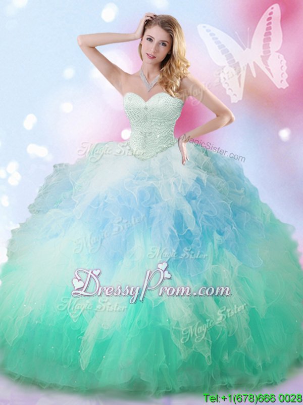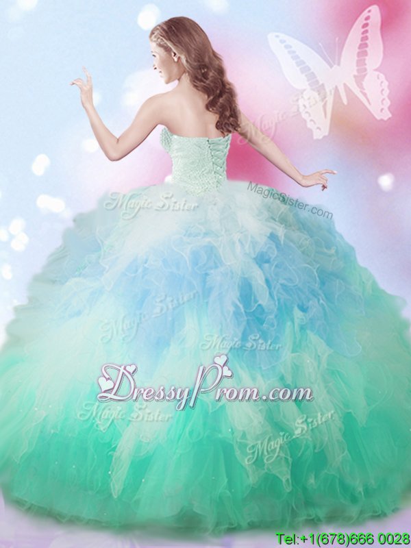 High Class Sweetheart Sleeveless Lace Up 15 Quinceanera Dress Multi-color Tulle