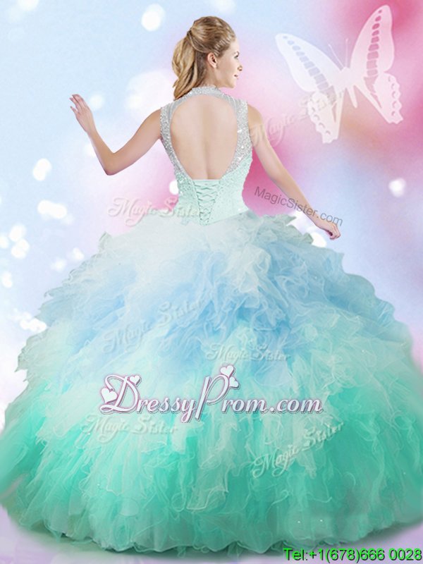 Luxury Sleeveless Floor Length Beading and Ruffles Lace Up Quinceanera Gowns with Multi-color