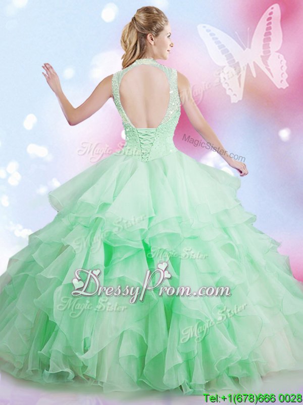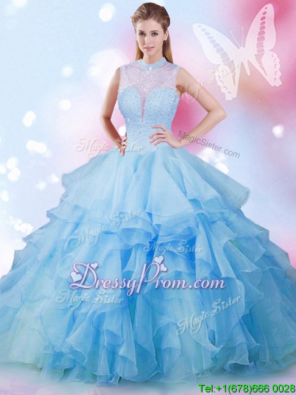 Clearance Floor Length Lace Up Quinceanera Dresses Baby Blue and In forMilitary Ball and Sweet 16 and Quinceanera withBeading and Ruffles
