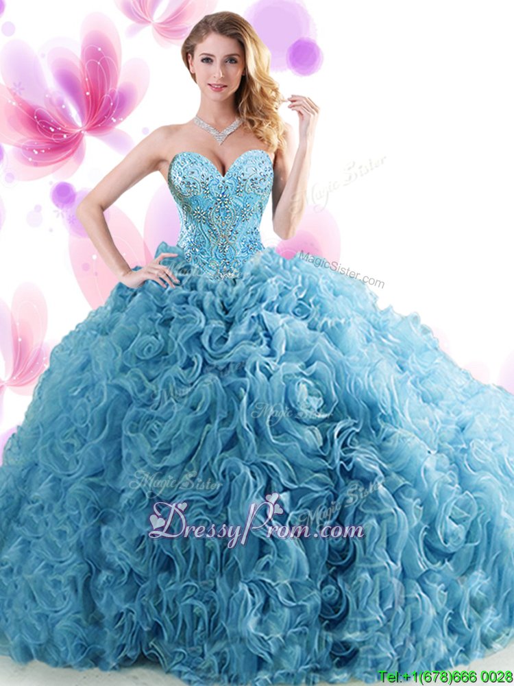 Fancy Blue Ball Gowns Sweetheart Sleeveless Organza Floor Length Lace Up Beading and Ruffles Vestidos de Quinceanera